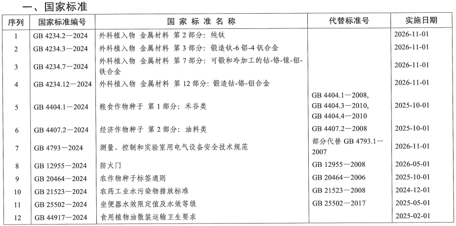 國家市場監督管理總局(國家標準化管理委員會)批準《外科植入物 金屬材料 第2部分:純鈦》等12項強制性國家標準和3項強制性國家標準修改單,現予以公告。
