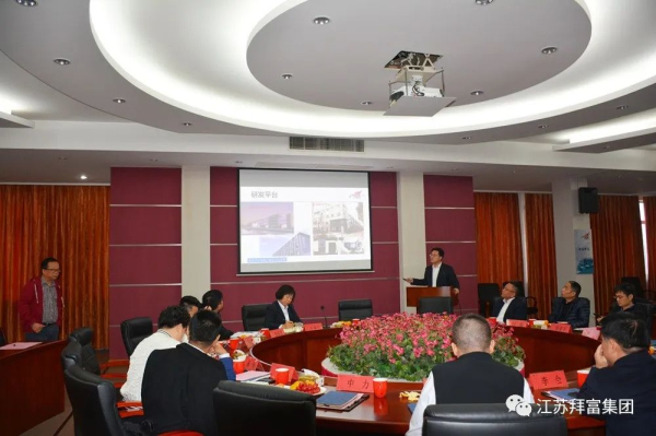 2023年11月11日,由拜富集團舉辦的《玻璃釉料應用技術》座談活動在江蘇宜興拜富科技園召開。來自福萊特、旗濱、耀皮、飛天、中力、銀泰豐、銀升、福坤、發德、明陽等周邊玻璃深加工企業的嘉賓共聚拜富,與公司研發、銷售部門等相關負責人,共計30余人一起參加了本次活動。此次活動,旨在加深玻璃深加工行業上下游的交流合作,降低玻璃產品成本,提高產品性能;顒佑砂莞豢萍汲崭笨偨浝砝钊f景主持,拜富集團董事長王美蘭出席會議并作歡迎致辭。